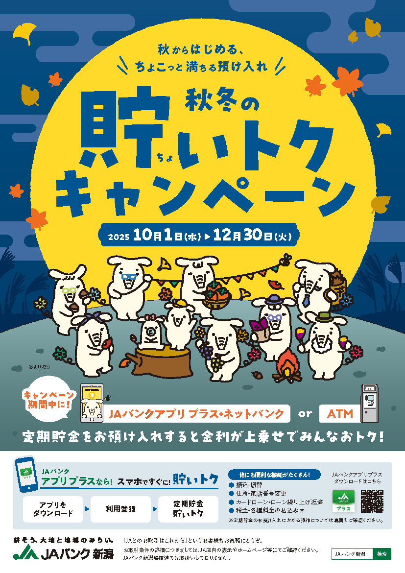 ※各JAにおいて募集金額に達した場合は、取扱期間内でも募集を終了させていただく場合があります。 また、新潟県信連では取り扱いがありません。 ※各JAにおける実施内容については、ご利用になるJAの窓口またはホームページでご確認ください。